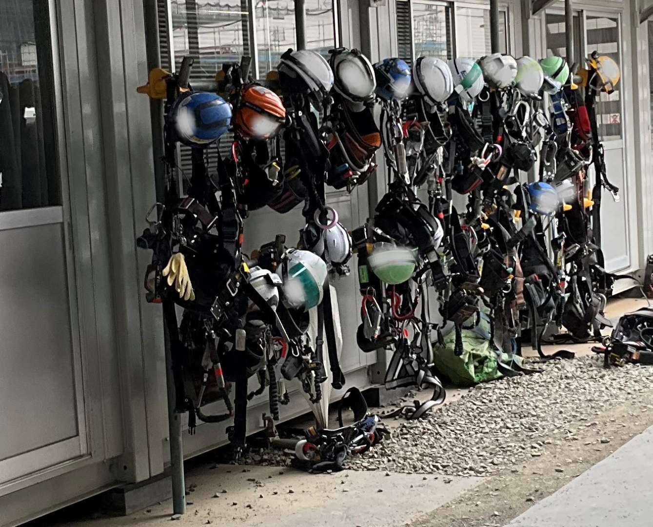 令和4年から現場の必需品❕命綱の安全帯→「墜落制止用器具」に呼び名が変わりました。高い所に行く時はワッカを引っ掛けて、命を守る大事な器具です。